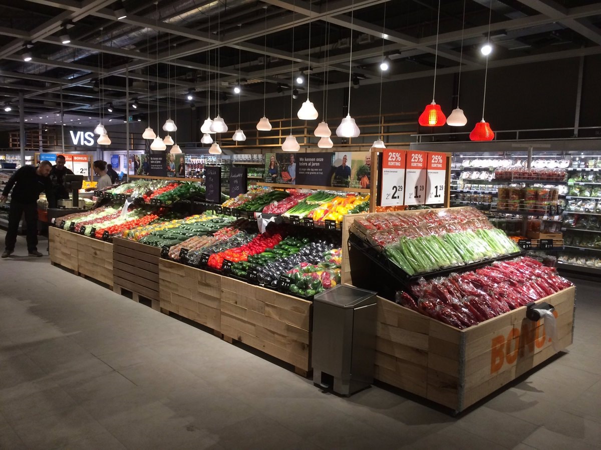 荷兰超市连锁品牌Albert Heijn早在2017年即在其位于荷兰开设的一百多家店铺中使用定制化的装饰吊灯来提升鲜食售卖区的氛围,这些灯具被打印成了水果的形状。同时,其他灯具设计也在不同超市区域中被使用,例如冰鲜区和咖啡区。Albert Heijn可以通过将灯罩返还昕诺飞,并将其粉碎后重新打印成新模型来便捷地更新店铺设计。