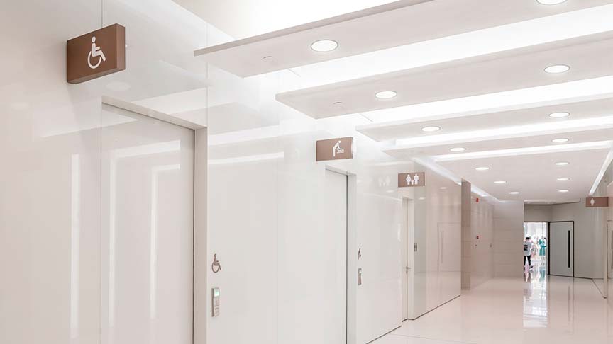 卫生间需要的不仅仅是基本的照明。 卫生间照明不足会造成安全隐患和令人不愉快的氛围。 我们先进的照明解决方案可自动调节,确保为每位访客提供光线充足、节能且温馨的空间。